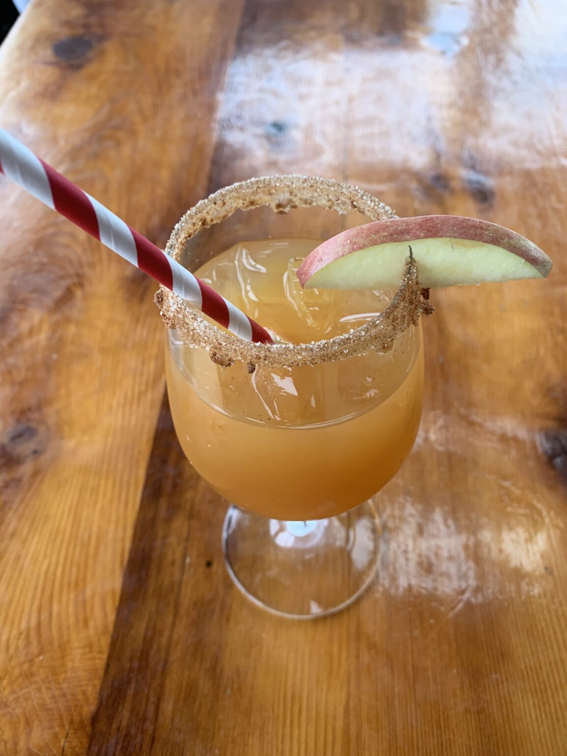 Makes 6-8 glasses Ingredients: 1 bottle Ferrante’s Grand River Valley Riesling 4 oz. caramel flavored syrup 24 oz. Apple Cider Garnish Ingredients: 2 tablespoons Smucker’s