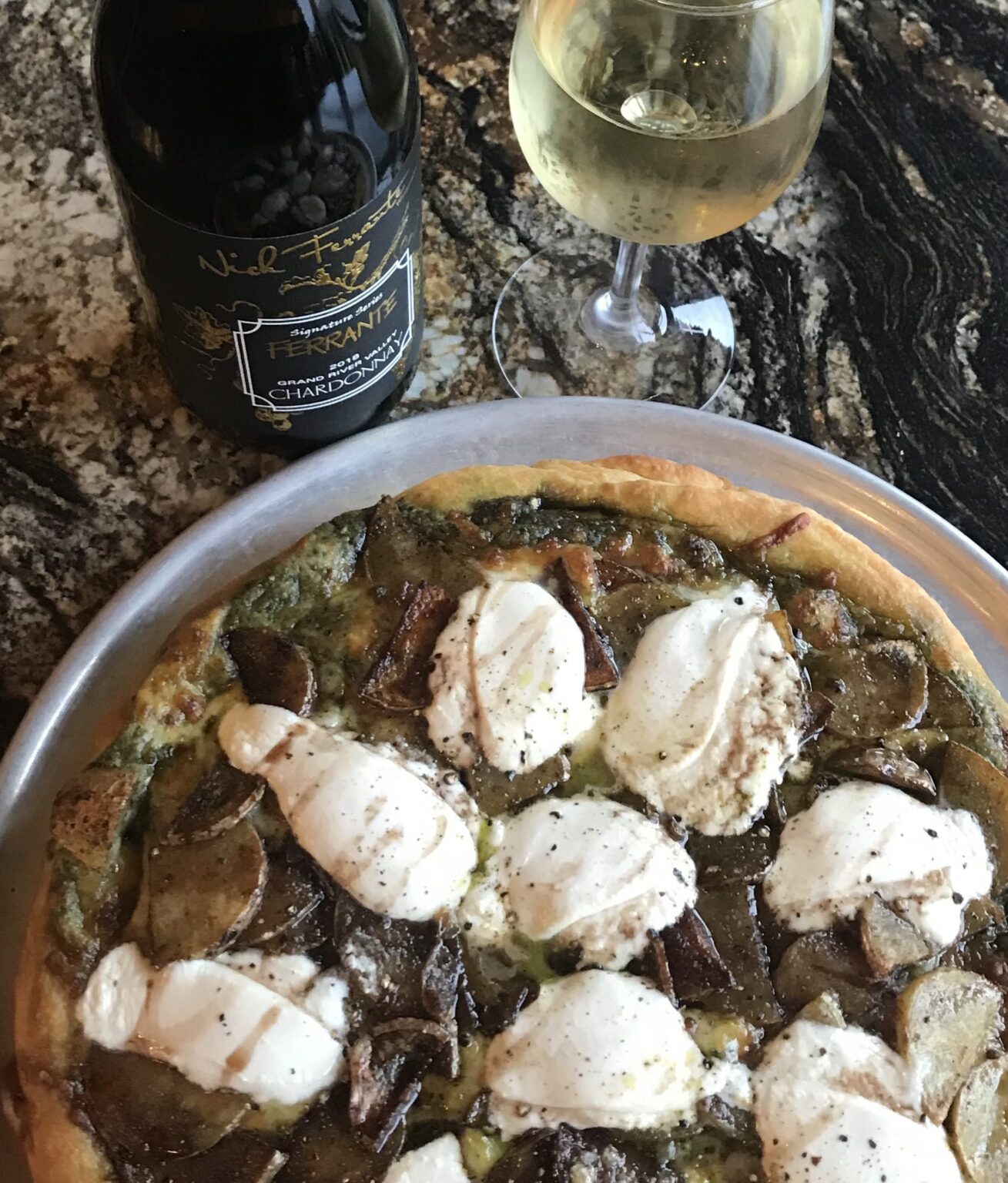 Ingredients: 1 store bought pizza dough 3 tablespoons olive oil 2 cloves of garlic, diced 1/2 cup Chef Kelly’s Pesto (see recipe below) 2-4 large