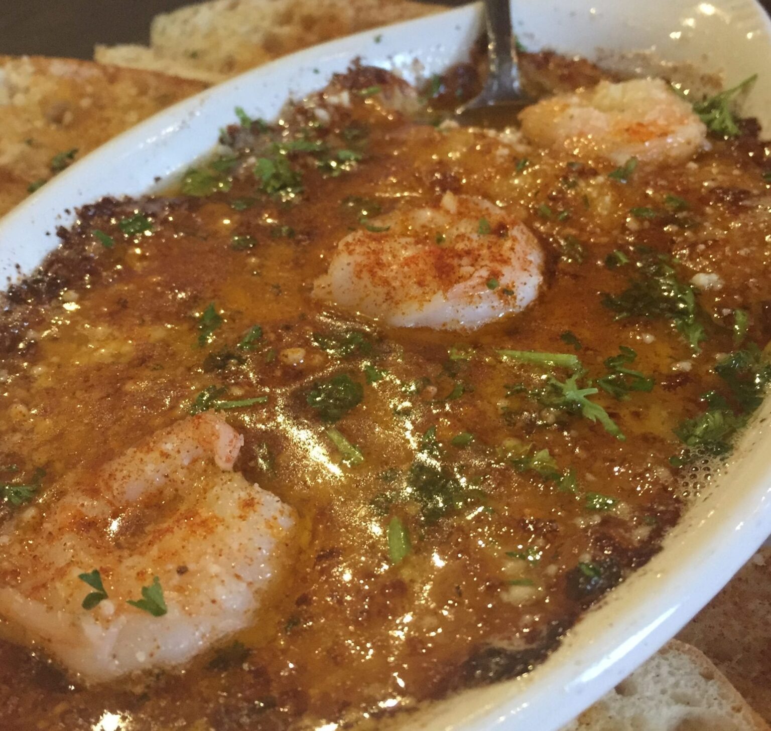 Ferrante’s Shrimp Scampi Dip Yield 4 servings Ingredients 2 tablespoons unsalted butter 8 ounces medium shrimp, peeled, deveined and roughly chopped 4 cloves garlic, minced